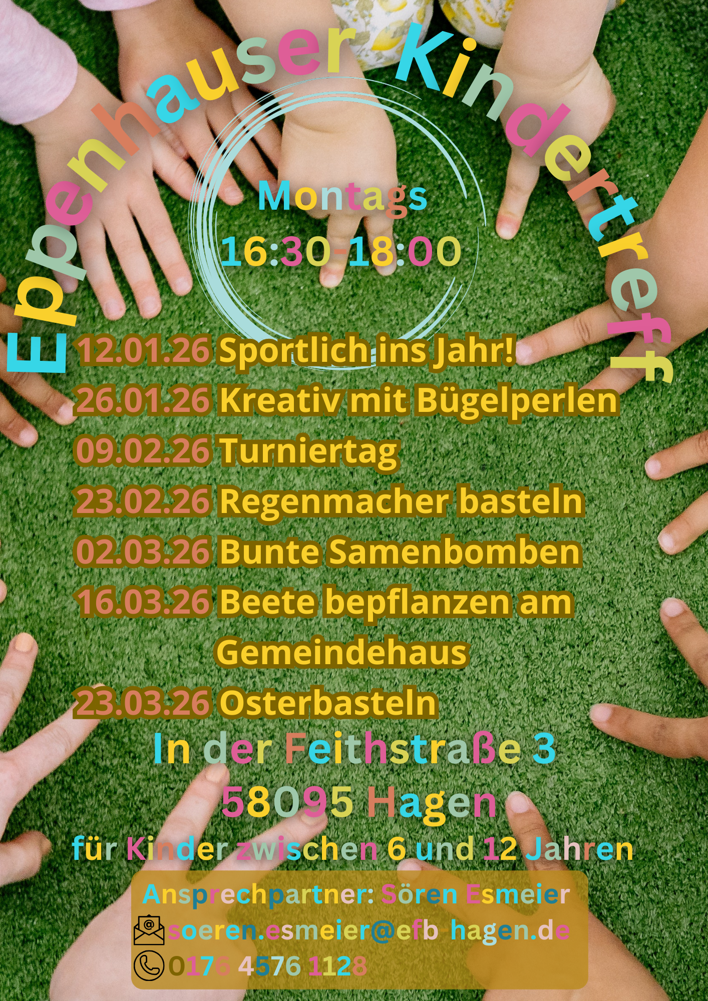 Alle zwei Wochen montags von 16:30 bis 18:00 Uhr laden wir Kinder zwischen 6 und 12 Jahren herzlich zum Kindertreff in die Feithstraße 3, 58095 Hagen ein.